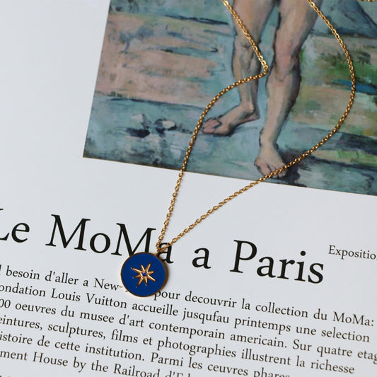 Elegant Blue Enamel Star Pendant Gold-Plated Necklace