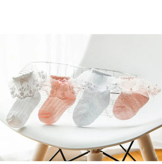 Lace 2 Pack Baby Infant Toddler Princess Ankle Socks with Pearl Bowknot For Girl