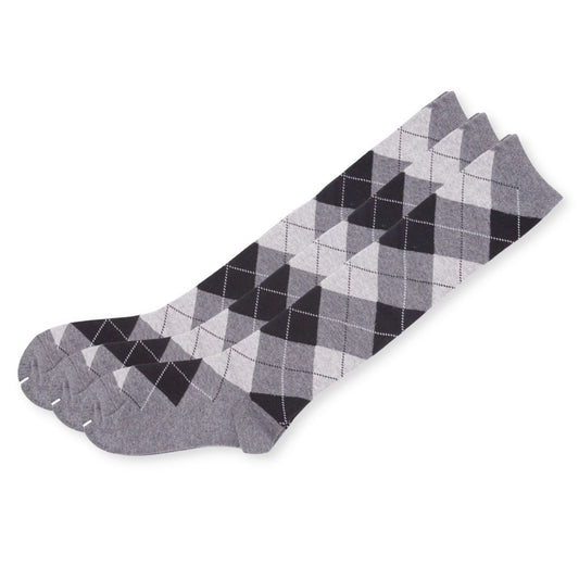 Argyle Knee High 3 Pairs Cotton Socks Diamond Check Pattern
