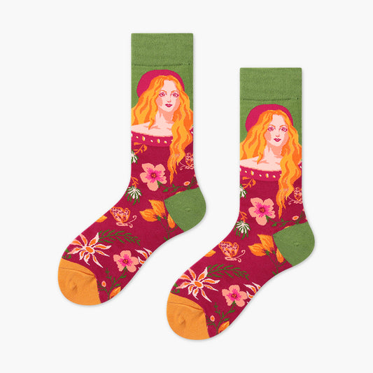 Red Portrait Colorful Casual Socks