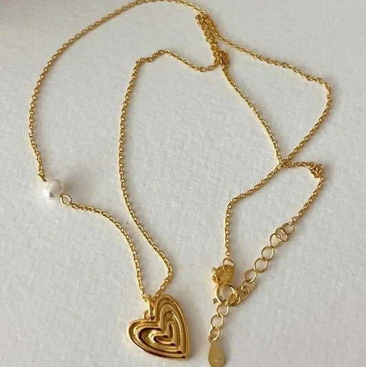 Fashion Irregular Triple Hollow Heart Shell Pearl 925 Sterling Silver Necklace