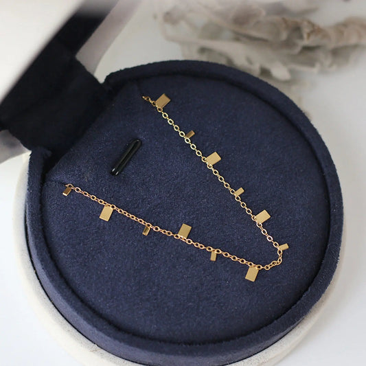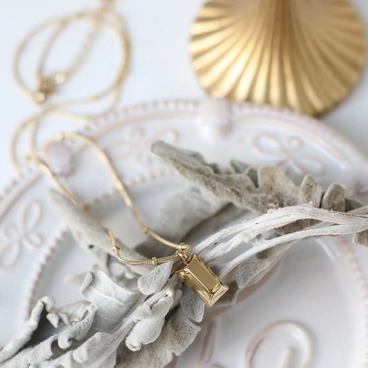 Sun Moon Yellow Gold Plated Rectangular Necklace