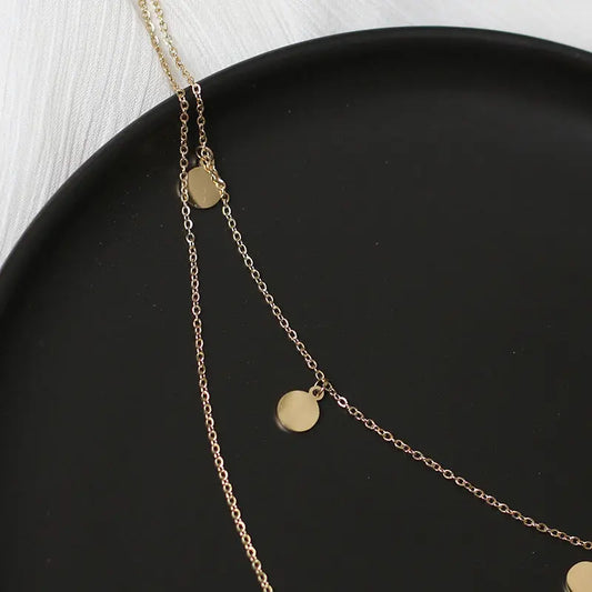 Layered Gold Plated Necklace with Coin Charm & Emerald Angel Pendant