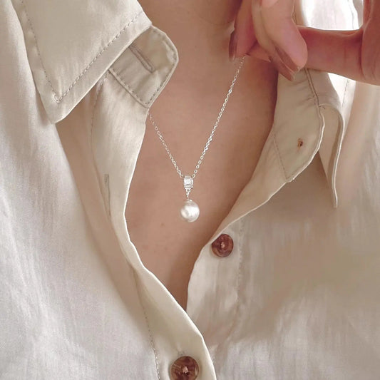 Classic Essential Unique Pearl Sterling Silver S925 Pendant Necklace