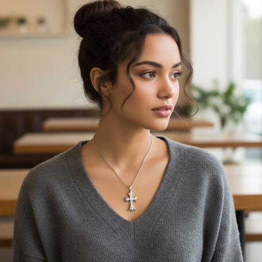 925 Silver Bezel-Set Diamond Cross Pendant Necklace - Secure Everyday Comfort Design