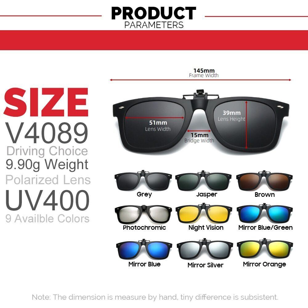 Fashion retro polarized clip-on flip sunglasses work well and are uv400 protection..For the price you can’t complain